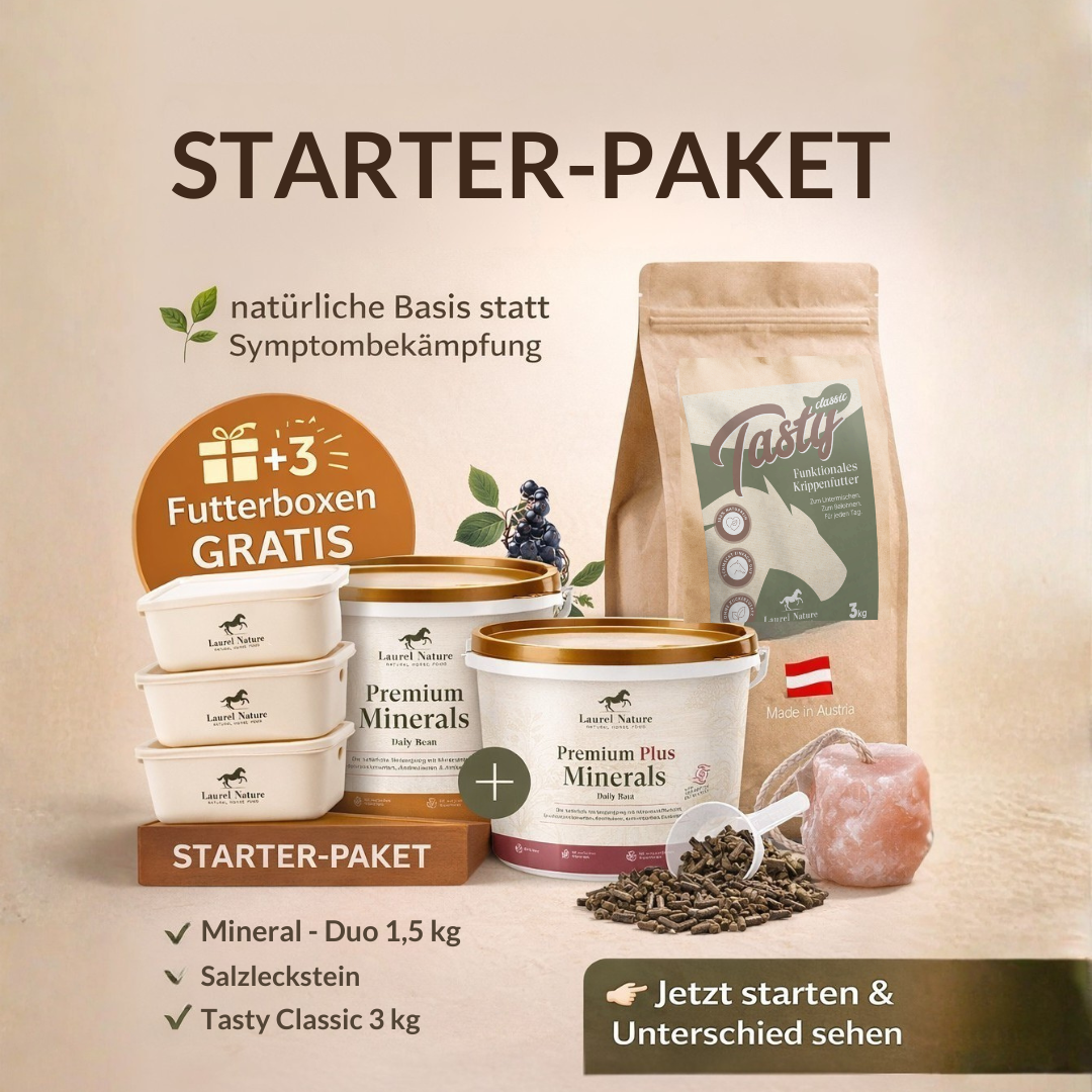 Dieses Starter-Paket nimmt dir die Entscheidung ab: Zwei perfekt kombinierte Minerals, Tasty als Ergänzung und eine simple Fütterungsempfehlung. Mehr brauchst du nicht.