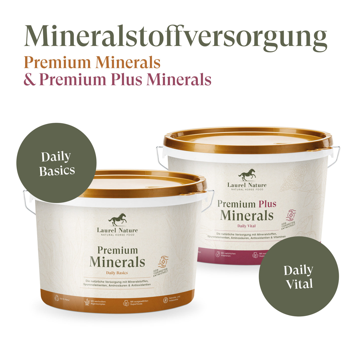 Wie ein Baukastensystem aufgebaut, nimmt es dir die Unsicherheit bei der Fütterung. Im Herzen unseres Systems stehen die "Premium Minerals" und "Premium Plus Minerals" – Einzeln oder kombiniert gefüttert versorgen sie dein Pferd mit allen essenziellen Mineralstoffen für eine optimale Zellgesundheit.